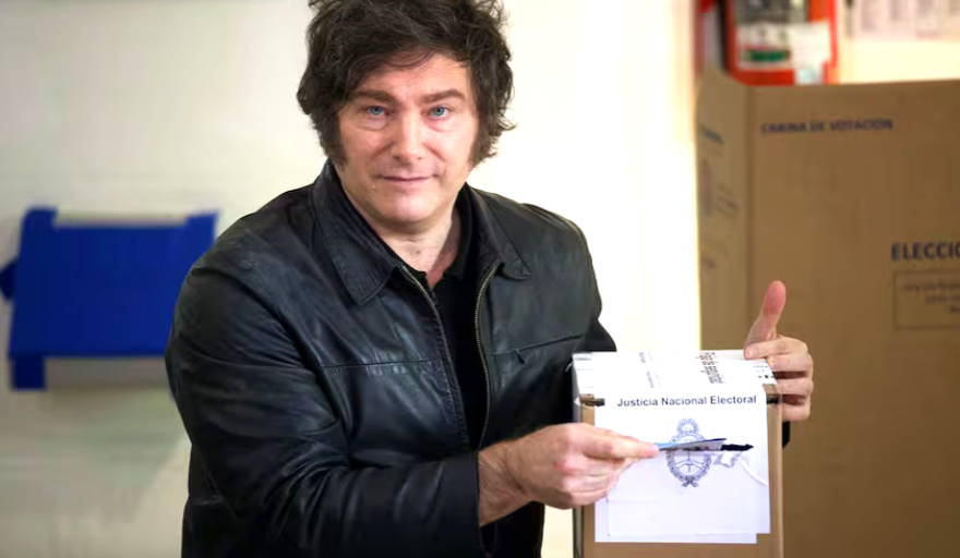 El presidente Javier Milei votó hoy en la sede de la Universidad Tecnológica Nacional (UTN) del barrio porteño de Almagro, acompañado por su hermana, Karina Milei, la secretaria general de la Presidencia.