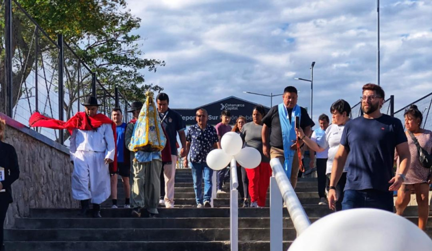 El miércoles 5 de noviembre, la imagen peregrina de la Virgen del Valle fue recibida en un clima de fiesta en el Polideportivo Sur, donde funciona la Dirección de Deporte. sobre avenida Hipólito Yrigoyen, en el sector de la ciudad capital.