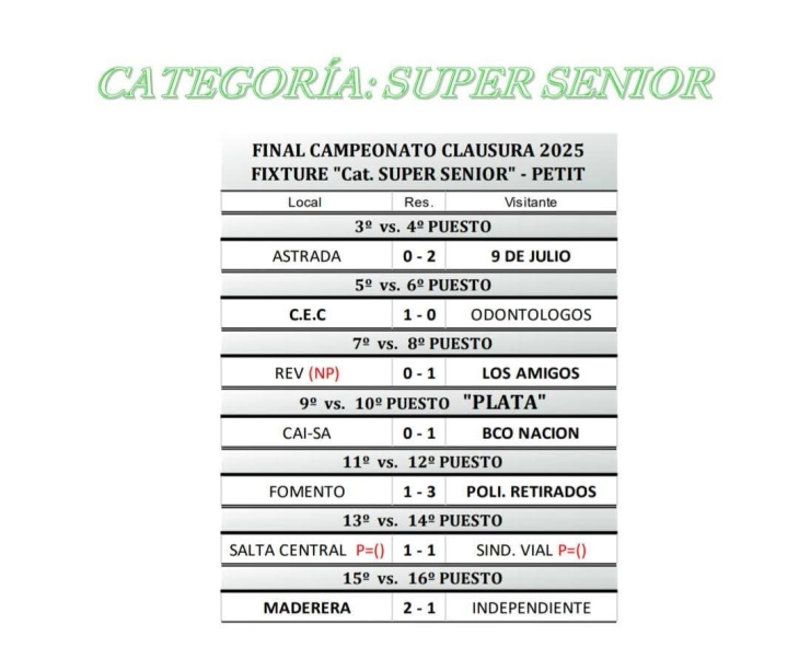 A continuación, todos los resultados de la jornada sabatina del Torneo Clausura 2025 “José Alberto Véliz”