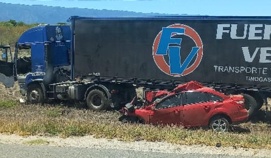 Por causas a determinar, un automóvil terminó incrustado en un camión de la empresa Fuerza de Ventas, de Tinogasta.