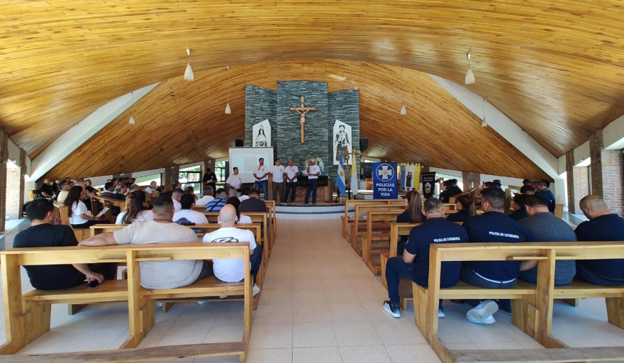 El Capellán Policial, Of. Insp. Pbro. Sergio Chumbita, junto al Jefe A/C de Zona "F" Pomán, Crio. Insp. Lic. Hugo Romero, al Crio. Insp. Walter Palavecino, al Director de Relaciones Institucionales, Crio. Insp. Lic. Diego Romero y personal de distintas dependencias policiales de la Jefatura de Zona "F", participaron del encuentro junto a Capellanes Policiales y efectivos de San Luis, San Juan, La Rioja, Tucumán, Córdoba y Policía de la Ciudad de Buenos Aires.