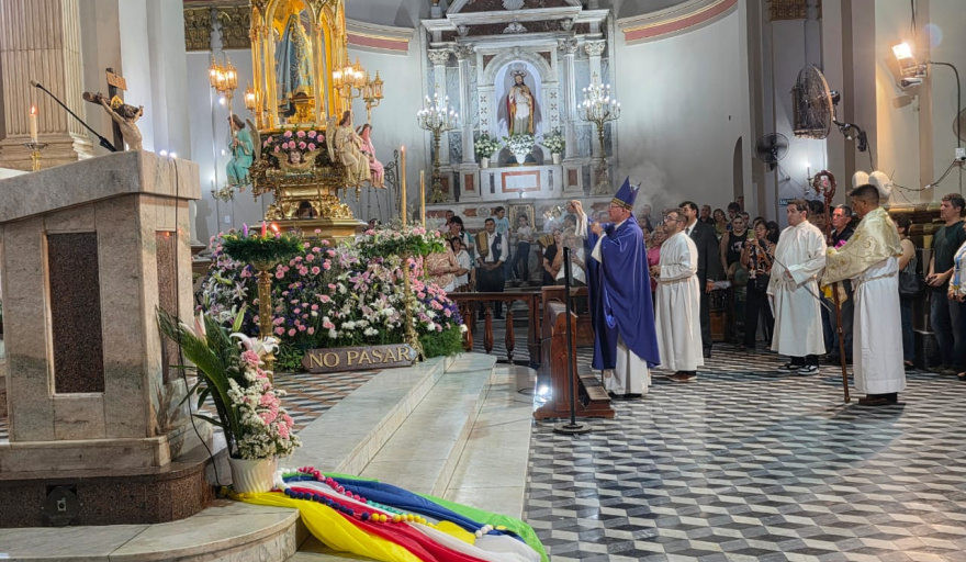 La Santa Misa fue presidida por el obispo diocesano, Mons. Luis Urbanč, y concelebrada por el padre Ramón Carabajal, capellán del Santuario Catedral, con la participación de miembros de la Pastoral Misionera y de la Infancia y Adolescencia Misionera (IAM), junto con devotos y peregrinos.