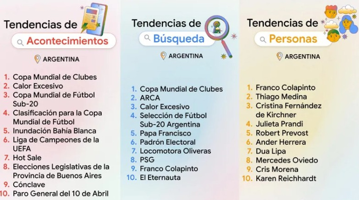 El buscador presentó las búsquedas más populares de los argentinos: entre los términos más buscados estuvo la competencia de la FIFA, la muerte del Papa y la expresidenta. También aparecen la serie El Eternauta y la Agencia de Recaudación y Control Aduanero (ARCA), entre otros.
