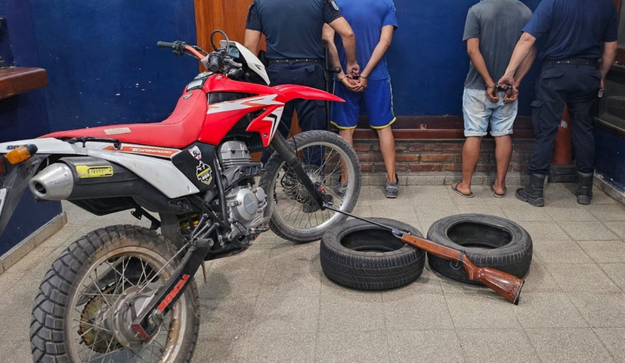 Los sujetos, identificados como *Córdoba (44)* y *Ruiz (49)*, habrían interceptado a un vecino durante la tarde y, bajo esa maniobra, se apropiaron de un rifle de aire comprimido calibre 5.5, que luego fue recuperado por los efectivos.