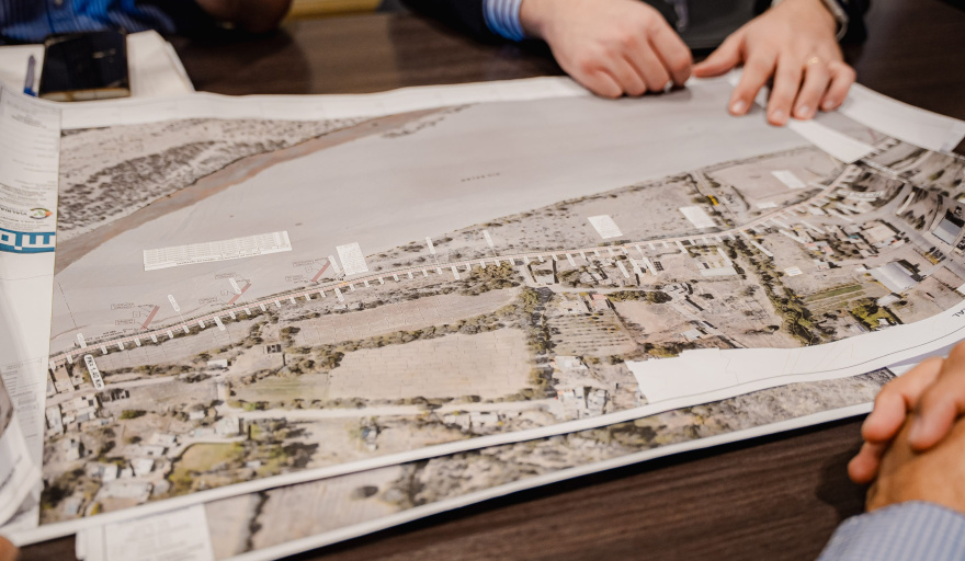 El gobernador Raúl Jalil, junto al ministro de Hacienda y Obras Públicas, Juan Marchetti, y el vicegobernador Rubén Dusso, mantuvo una reunión con el intendente de Belén, Cristian Yapura, y el equipo técnico de Vialidad Provincial para avanzar en la planificación de la obra básica y pavimentación del paso externo de la ciudad de Belén.