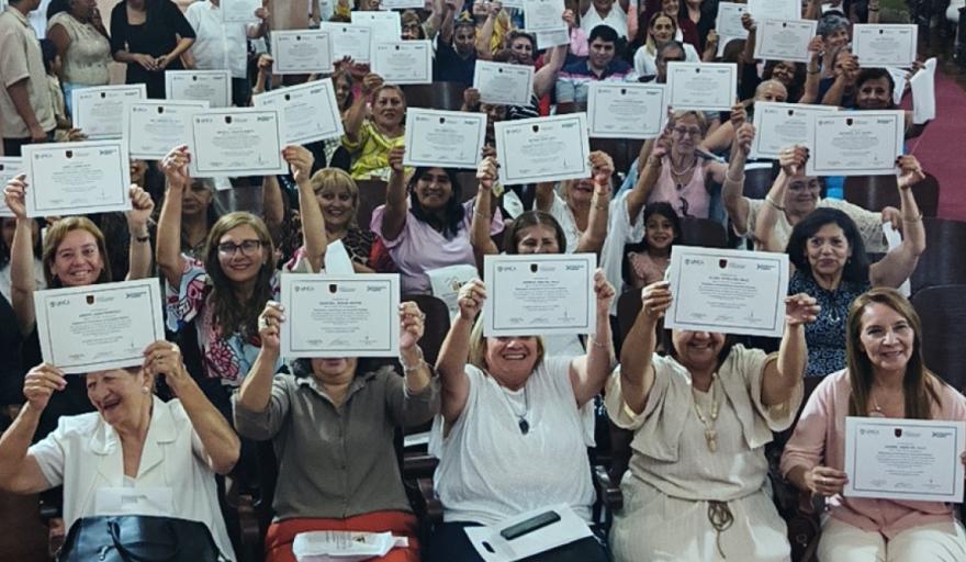 El rector de la Universidad Nacional de Catamarca Ing Oscar Arellano, el decano de la Facultad de Ciencias Económicas y Administración (FCEyA) de la Universidad Nacional de Catamarca CPN Gustavo Lazarte y el intendente de la Capital Gustavo Saadi entregaron ayer más de ochenta certificados a los adultos mayores que cursaron la Diplomatura Universitaria en Economía Plateada: Innovación y Emprendimiento. La carrera fue creada por el Instituto de Investigación en Estadística y Demografía (IIED) de la FCEyA y dictada en coordinación con el Consejo del Adulto Mayor de la Municipalidad de la Capital.