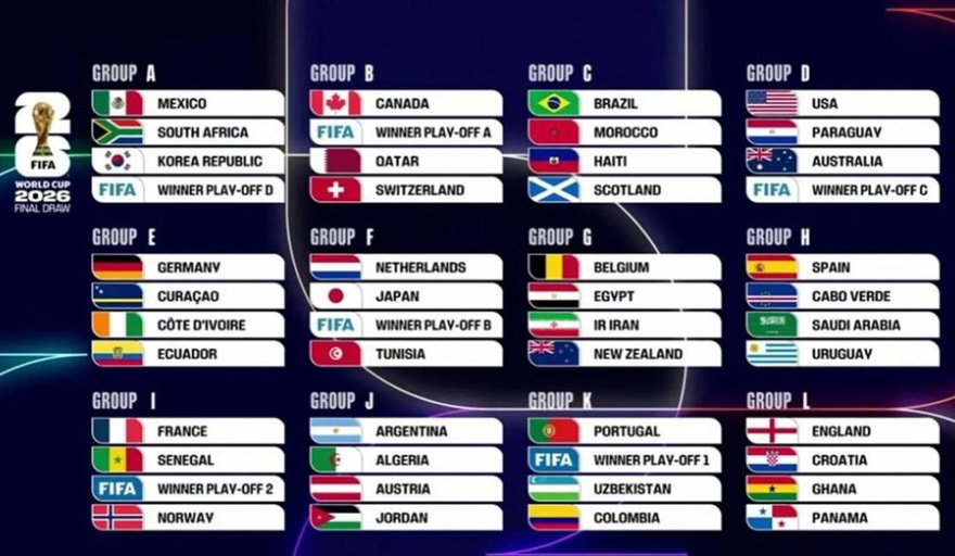 Portugal aparece en el Grupo K y espera por Nueva Caledonia, Jamaica o República Democrática del Congo; además tendrá a Uzbekistán y Colombia. Inglaterra encabeza el Grupo L junto a Ghana, Croacia y Panamá.