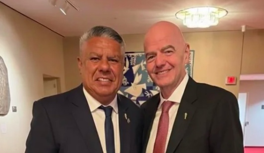 En las imágenes, Tapia no solo aparece con Infantino, sino que también están presentes el presidente de la Conmebol, el paraguayo Alejandro Domínguez; Luciano Nakis, prosecretario de AFA; y el ex futbolista Maximiliano Rodríguez.