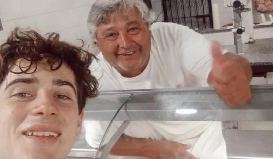 En una de las imágenes se lo puede ver junto a su padre en una carnicería. A su lado estaba el carro de compras y ambos miraban los cortes de carne. Incluso, el carnicero le pidió una foto al piloto, que tenía puesta una remera y shorts deportivos y unas alpargatas. En otra postal se lo ve posando en la puerta del comercio con una bolsa de compras y un clásico tetrabrik de leche chocolatada.