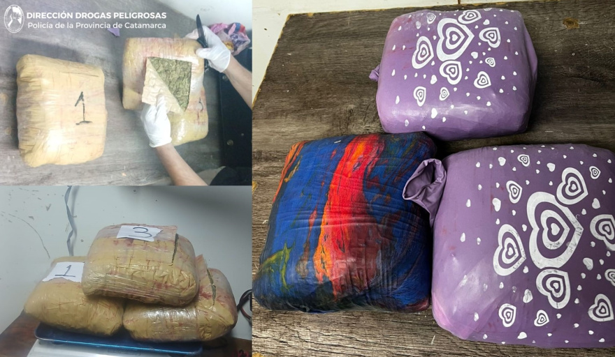 En ese momento, al inspeccionar la bodega del micro, con la ayuda del can “Apolo”, adiestrado para detectar estupefacientes, que hizo un marcaje positivo, los policías encontraron en el interior de una maleta de color negro, que pertenecería a una mujer de 76 años de edad, tres (03) piñatas que en su interior contenían paquetes envueltos con cinta de embalar transparente y marrón, con una sustancia herbácea que, al ser sometida a la prueba de campo correspondiente, arrojó como resultado que se tratarían de 3,272 Kg. de Marihuana, que quedaron en calidad de secuestro.