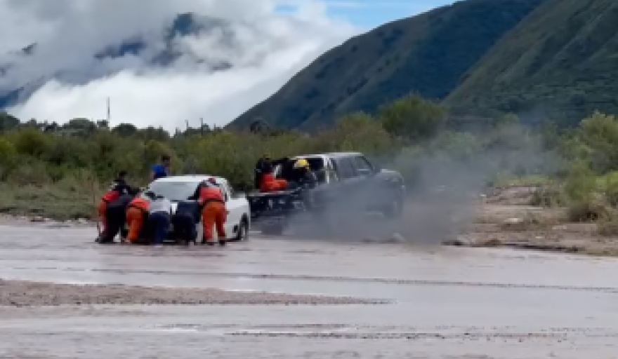 El hecho ocurrió cuando el conductor de una camioneta Volkswagen Saveiro intentó atravesar el cauce del río y fue sorprendido por un repentino aumento del caudal, lo que dejó al vehículo inmovilizado en pleno lecho.