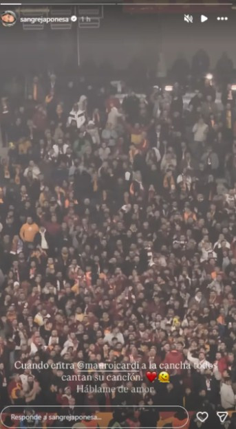 Este sábado, la actriz compartió una historia de Instagram desde Turquía, donde se la vio en la tribuna del estadio del Galatasaray, alentando al delantero argentino. En el video, se escuchó a los hinchas coreando el nombre de Icardi justo en el momento de su ingreso al campo de juego.