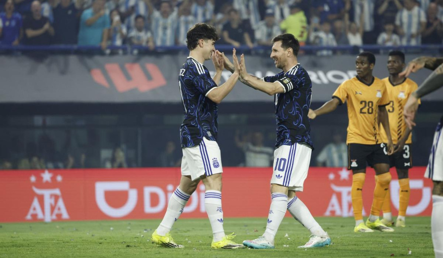 El elenco nacional se impuso con goles del delantero Julián Álvarez, a los tres minutos del primer tiempo; el astro argentino Lionel Messi, en 43 de la primera parte; el defensor Nicolás Otamendi, de penal, a los cuatro minutos de la segunda etapa; el defensor Dominic Chanda, en contra, cuando iban 22 minutos del complemento; y el mediocampista Valentín Barco, en el tercer minuto de descuento.