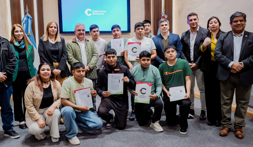El gobernador Raúl Jalil y el ministro de Educación, Ciencia y Tecnología, Nicolás Rosales Matienzo, encabezaron esta mañana, en Casa de Gobierno, el acto de entrega de certificados correspondientes a la capacitación de diez personas que realizaron un trayecto formativo sobre soldadura industrial. También acompañó la presidenta de la Cámara de Diputados, Paola Fedeli.