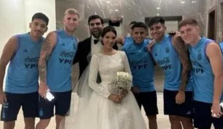 Resulta que Rocco Ríos Novo (Phoenix Rising), Nicolás Valentini (Boca), Thiago Almada (Atlanta United), Santiago Castro (Vélez) y Valentín Barco (Boca) se fotografiaron con una pareja que se casó en el mismo hotel donde el combinado de Javier Mascherano lleva adelante la concentración.