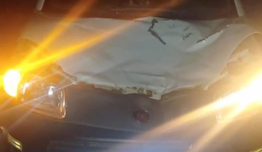 Carlos Mercado (58) circulaba con su nieto de 15 años a bordo de una Fiat Fiorino, y no pudo evitar colisionar con un equino que se encontraba en la calzada.