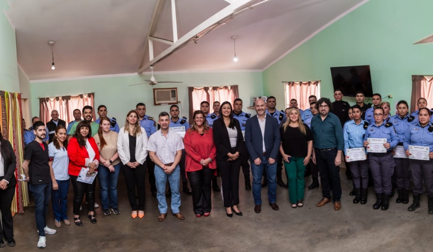 La Ministra de Seguridad, Fabiola Segura, y el Ministro de Salud, Lucas Zampieri, participaron en el cierre de la capacitación "Entrenamiento en habilidades para el manejo de conductas suicidas" dirigida a efectivos del Servicio Penitenciario Provincial.